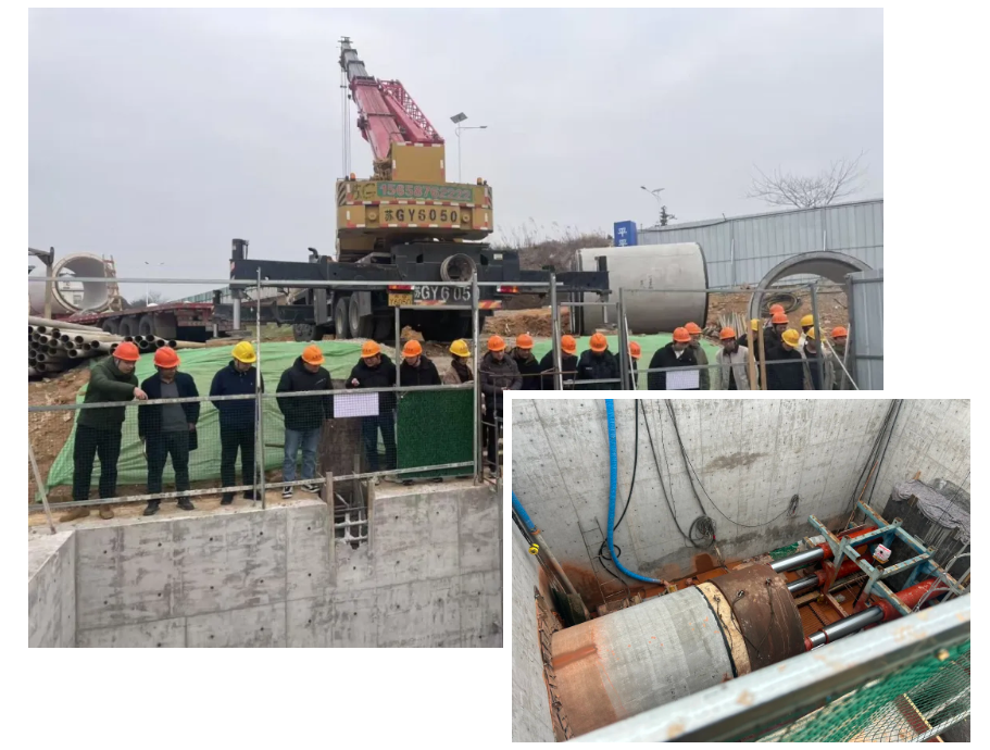 在顶管工程施工现场,施工单位的技术人员对顶管施工的前期筹备工作、管材材质及其密闭处理规范、关键注意要点以及施工工艺等方面的内容进行了详尽阐述。与此同时,技术人员结合多年顶管施工实践经验,讲解了顶管施工的实际案例,深入分析施工过程中的难点问题,并反复强调施工安全的管控措施。