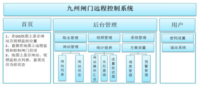系统以水库、河道、供水渠的闸门为对象,采用自动监测与远程遥测技术、通信及计算机网络技术、地理信息技术,实现闸泵联合调度以及资源信息的共享,提升水资源调度管理效率。被控闸门可以是平板门、弧形门、液压门或快速门。
